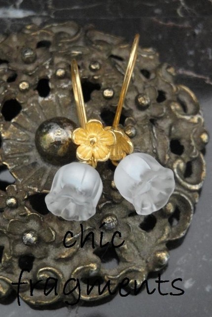 Stunning gowns like this deserve the most enchanting jewelry, n'est pas? These three pieces of body candy from Chic Fragments on etsy almost took my breath away! Made by the renowned artist Renee Lalique, these limited edition items are not only made of the most delicate frosted glass, but are also tiny interpretations of my most favorite flower, Lily of the Valley. Each is sold separately, as maybe you would like only the simple touch of itsy blooms on each ear. However, if you are lucky enough to be able to acquire all three pieces, you would surely be the subject of the quiet whispers of "Where DID she get that incredible jewelry?"